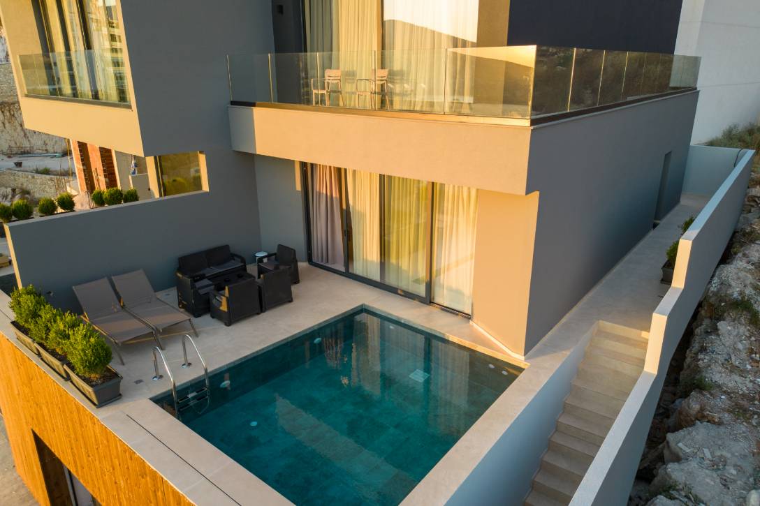 Elegant, modern villas with Ionian touches and breathtaking sea views. Spacious interiors designed for comfort, style, and relaxation.